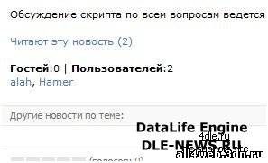 Назначение: Все видели на форумах что-то вроде онлайна в определенной теме к примеру. Точно такое же реализовано в новостях DLE.